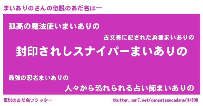 | 胡散臭い通販商品みたいなあだ名 | 『億万長者になれる霊験あらたかなお札…その名も「まいありの」』 |
