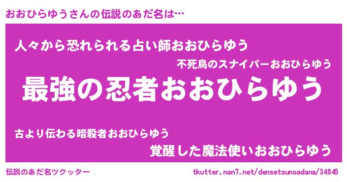 | 意味不明あだ名 | 『住所不定無職おおひらゆう(62歳)』 |