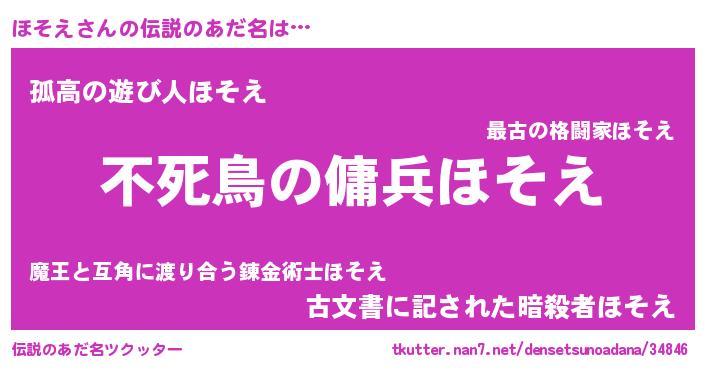 | 胡散臭い通販商品みたいなあだ名 | 『モテモテ間違いなし水晶球…その名も「ほそえ」』 |