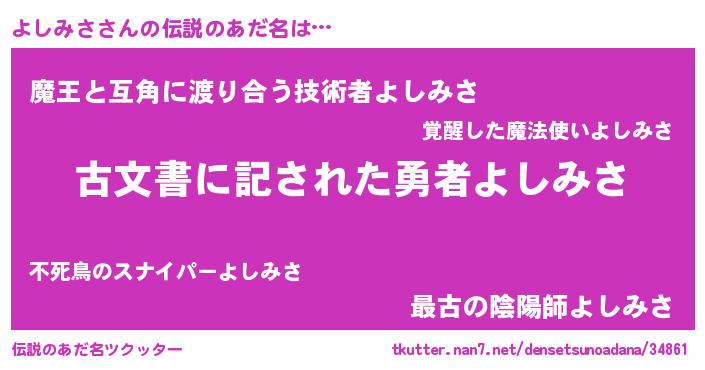 | 意味不明あだ名 | 『永久保存よしみさ』『自称よしみさ』 |