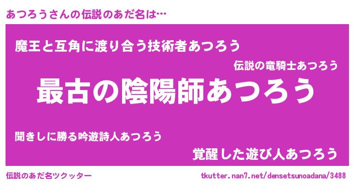 | 意味不明あだ名 | 『あつろうフォーエバー』『自称あつろう』 |