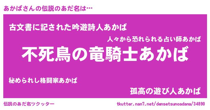 | 女子向けラノベタイトル風あだ名 | 『あかば姫と円卓の騎士』 |