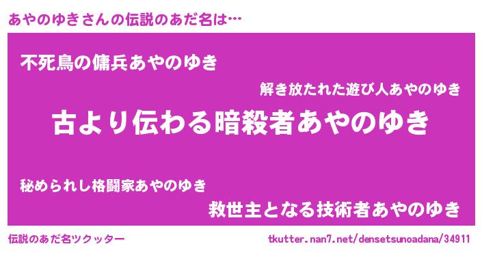 | 意味不明あだ名 | 『自称あやのゆき』『永久保存あやのゆき』 |