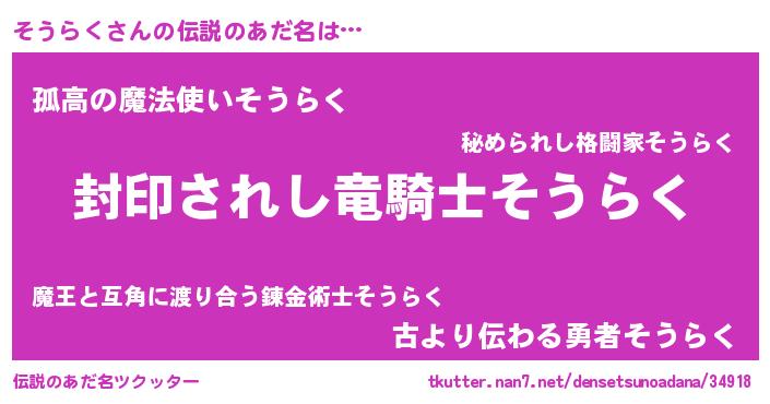 | 胡散臭い通販商品みたいなあだ名 | 『億万長者になれるブレスレット…その名も「そうらく」』 |