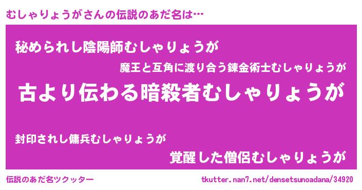 | 胡散臭い通販商品みたいなあだ名 | 『来世でも幸せになれる健康食品…その名も「むしゃりょうが」』 |