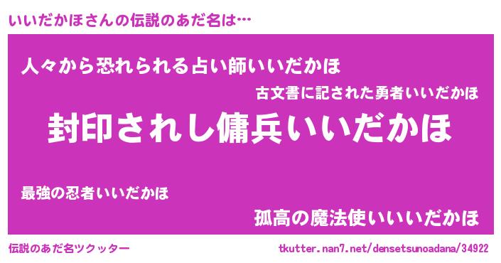| ヒーロー風カッコイイあだ名 | 『スーパーイイダカホ』『仮面イイダー』 |