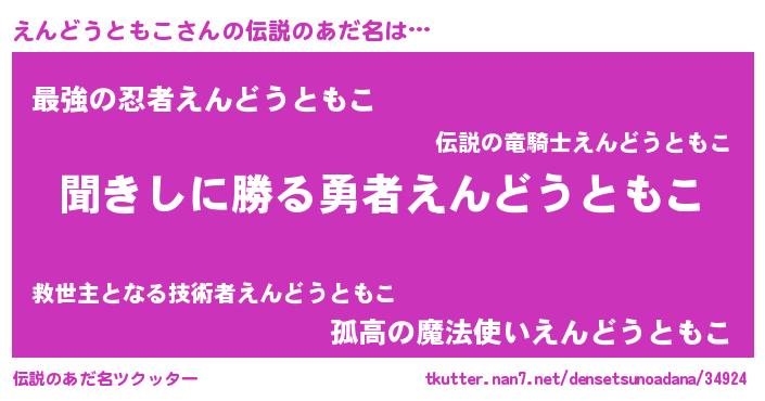 | ヒーロー風カッコイイあだ名 | 『ネオエンドウトモコ』『暗黒騎士エン』 |
