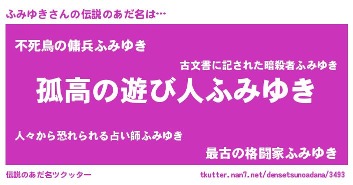 | 女子向けラノベタイトル風あだ名 | 『ふみゆきは平凡を望む』 |