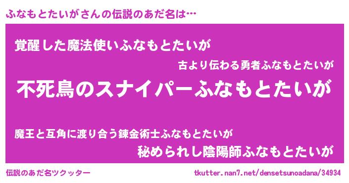 | 男性向けラノベタイトル風あだ名 | 『フナモトタイガアートオンライン』 |