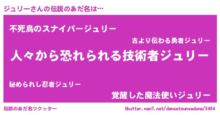 | ヒーロー風カッコイイあだ名 | 『超時空戦士ジュリー』『魔戒騎士ジュ』 |