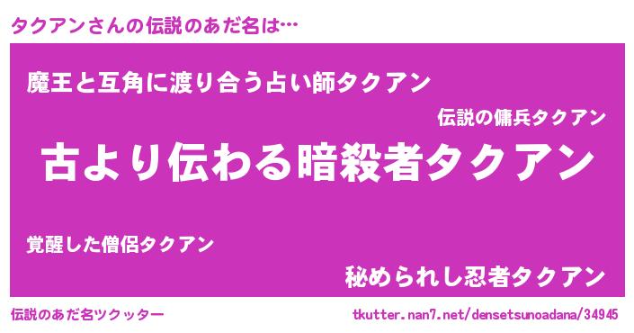 | ヒーロー風カッコイイあだ名 | 『ネオタクアン』『慈愛の使者タクアン』 |