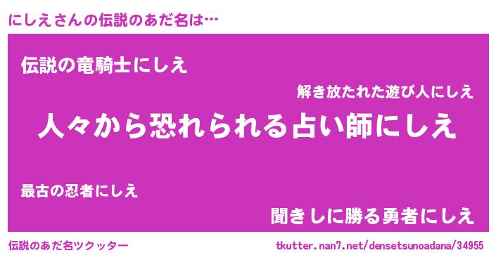 | 男性向けラノベタイトル風あだ名 | 『おまえをオタクにしてやるから、俺をにしえにしてくれ! 』 |