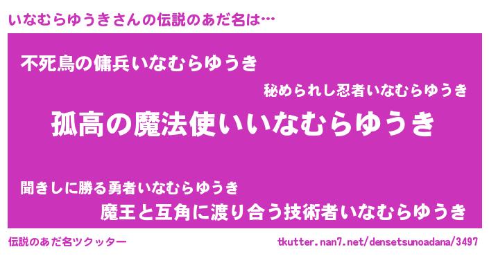 | 男性向けラノベタイトル風あだ名 | 『ダンジョンにいなむらゆうきを求めるのは間違っているだろうか』 |