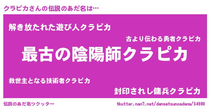 | ファンタジー風あだ名 | 『ゼクラトゥ』『エターナルクラピカー』 |