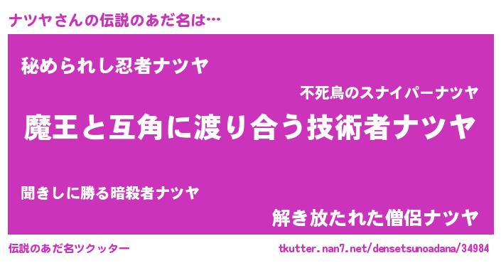 | ヒーロー風カッコイイあだ名 | 『サイバー戦士ナツヤ』『銀牙騎士ナツ』 |