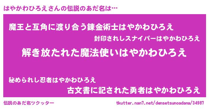 | 男性向けラノベタイトル風あだ名 | 『はやかわひろえの嫁は女の子じゃないと思った?』 |