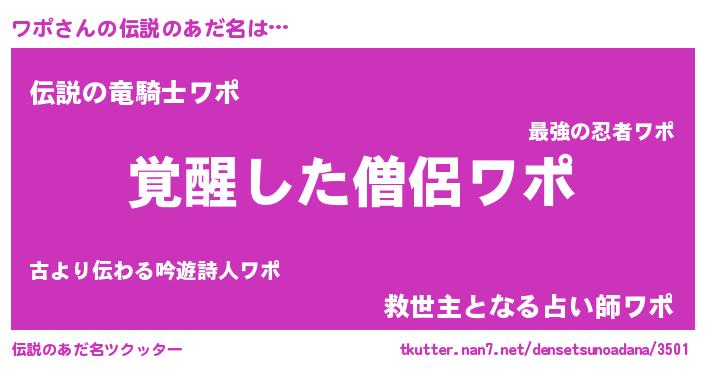 | 女子向けラノベタイトル風あだ名 | 『ワポ様がみてる』『ワポ姫と円卓の騎士』 |