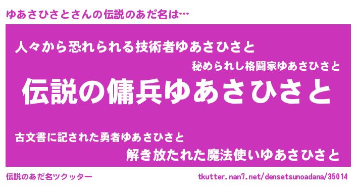 | 胡散臭い通販商品みたいなあだ名 | 『必ず成功する水晶球…その名も「ゆあさひさと」』 |