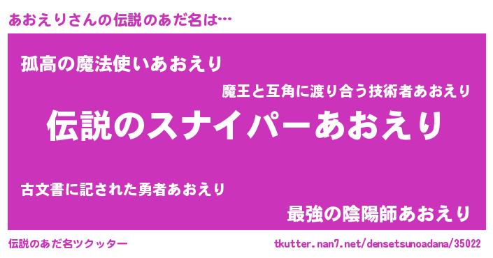 | 胡散臭い通販商品みたいなあだ名 | 『必ず成功する霊験あらたかなお札…その名も「あおえり」』 |
