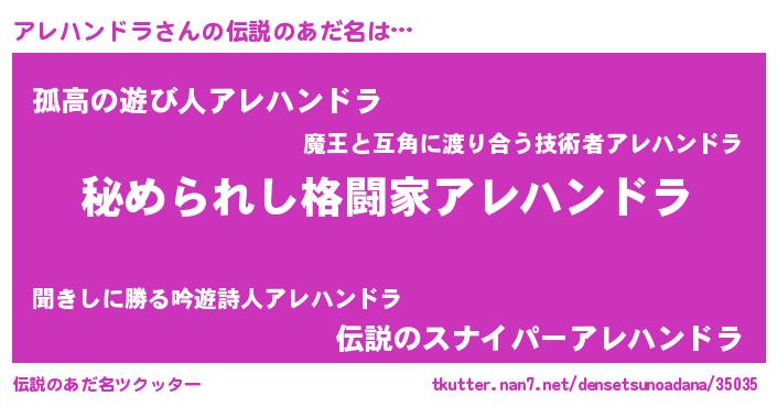 | ファンタジー風あだ名 | 『エターナルアレハンドラー』 |