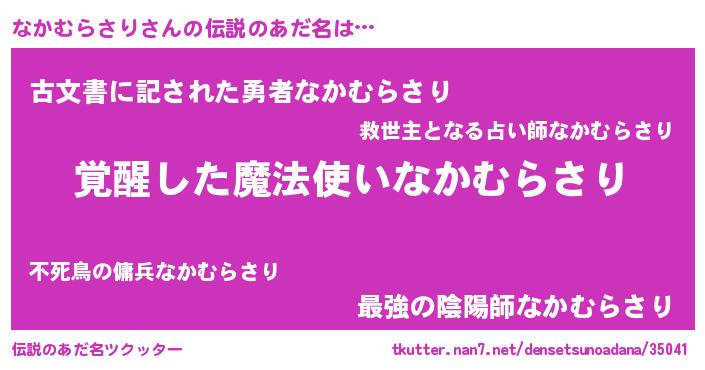 | ヒーロー風カッコイイあだ名 | 『究極戦士ナカムラサリ』『天弓騎士ナカ』 |
