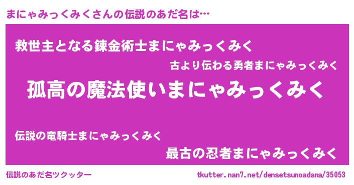 | ヒーロー風カッコイイあだ名 | 『ウルトラ戦士マニャミックミク』 |