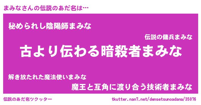 | 胡散臭い通販商品みたいなあだ名 | 『来世でも幸せになれる健康食品…その名も「まみな」』 |
