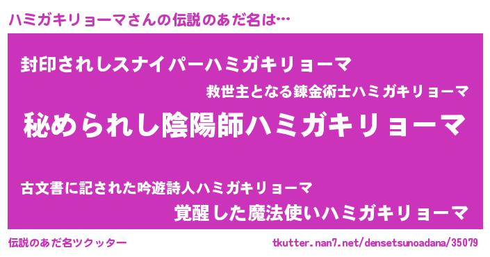 | 欧米人風あだ名 | 『ハミガキリョーマクリステル』 |