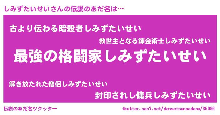 | 意味不明あだ名 | 『住所不定無職しみずたいせい(11歳)』 |