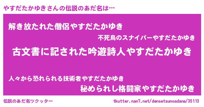 | 意味不明あだ名 | 『住所不定無職やすだたかゆき(12歳)』 |