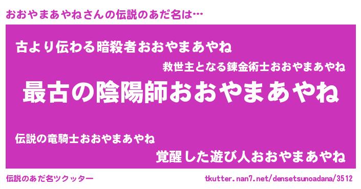 | ヒーロー風カッコイイあだ名 | 『ウルトラおおやまあやねマン』 |