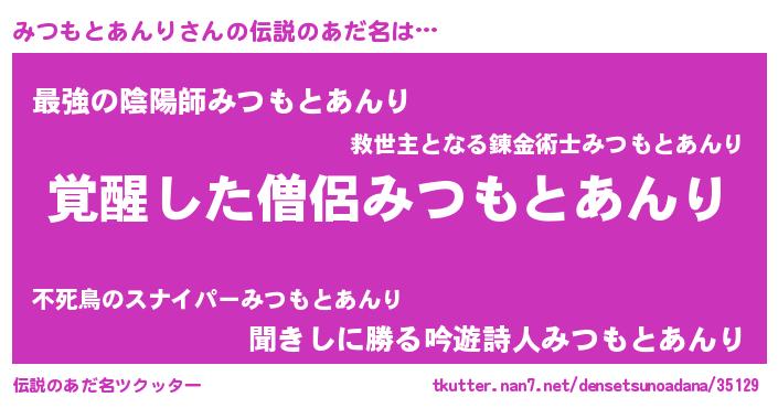 | 男性向けラノベタイトル風あだ名 | 『みつもとあんりに滅ぼされるだけの簡単なお仕事です』 |