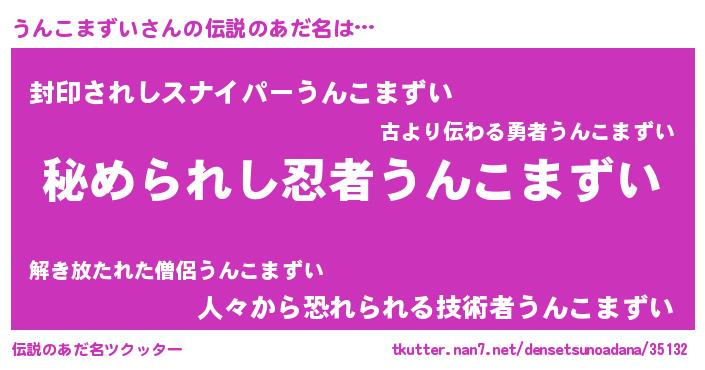 | 意味不明あだ名 | 『住所不定無職うんこまずい(68歳)』 |