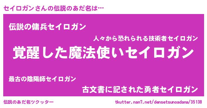 | ヒーロー風カッコイイあだ名 | 『炎刃騎士セイ』『スーパーセイロガン』 |