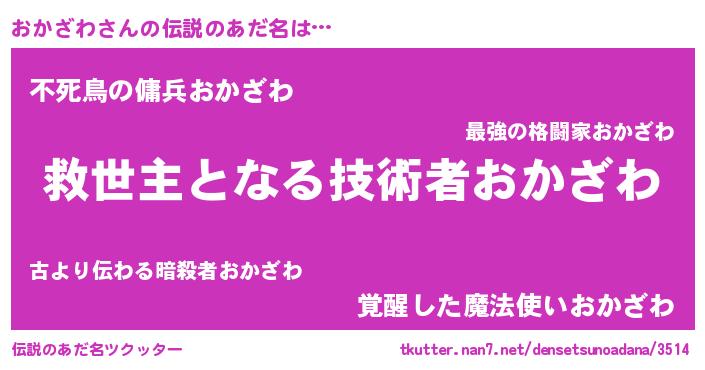 | 男性向けラノベタイトル風あだ名 | 『この素晴らしい世界におかざわを!』 |