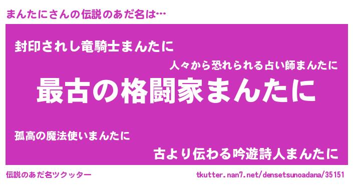 | ヒーロー風カッコイイあだ名 | 『ウルトラまんたにマン』『仮面マンダー』 |