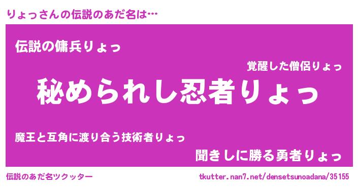| 男性向けラノベタイトル風あだ名 | 『はたらくりょっさま!』『りょっの憂鬱』 |