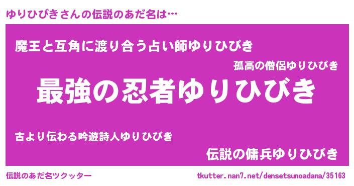 | 意味不明あだ名 | 『住所不定無職ゆりひびき(43歳)』 |