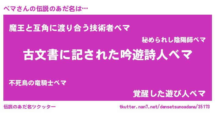 | ヒーロー風カッコイイあだ名 | 『仮面ベマダー』『ネオベマ』 |