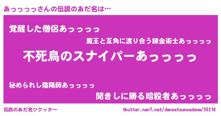 | ヒーロー風カッコイイあだ名 | 『スーパーアッッッッ』『幻影騎士アッ』 |