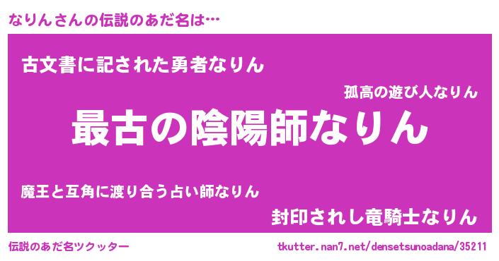 | ヘコむあだ名 | 『豆乳』『なりん(遠い目)』『なりを』 |