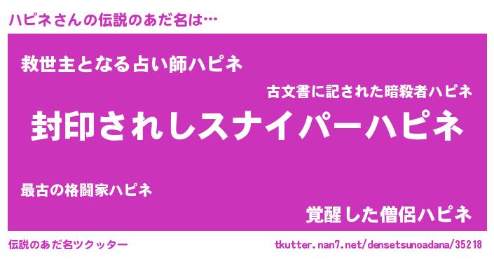 | ポケモン風あだ名 | 『ハピチュウ』『ハックウザ』 |