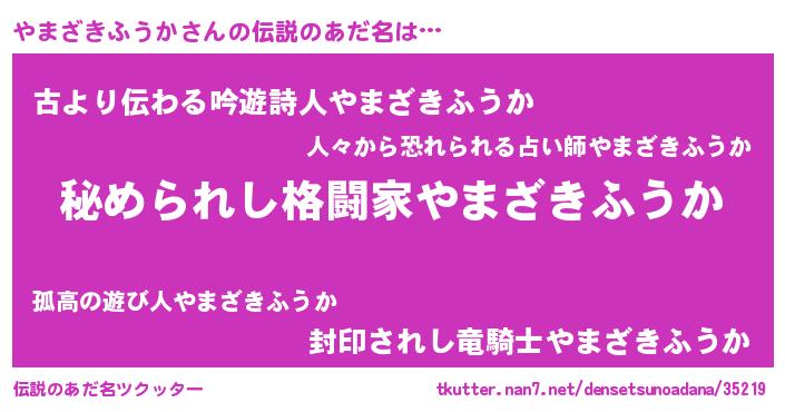 | 女子向けラノベタイトル風あだ名 | 『シンデレラやまざきふうか家の靴箱館』 |