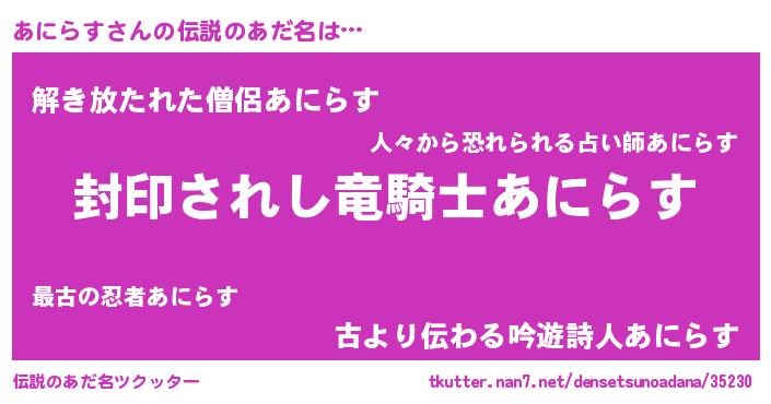 | 男性向けラノベタイトル風あだ名 | 『アニラスアートオンライン』 |