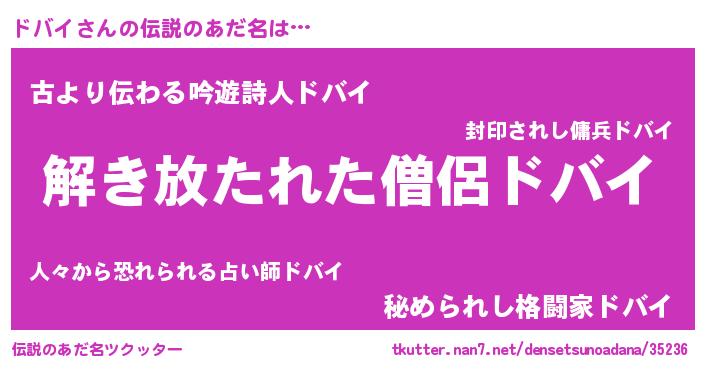 | ヒーロー風カッコイイあだ名 | 『仮面ドバダー』『銀牙騎士ドバ』 |