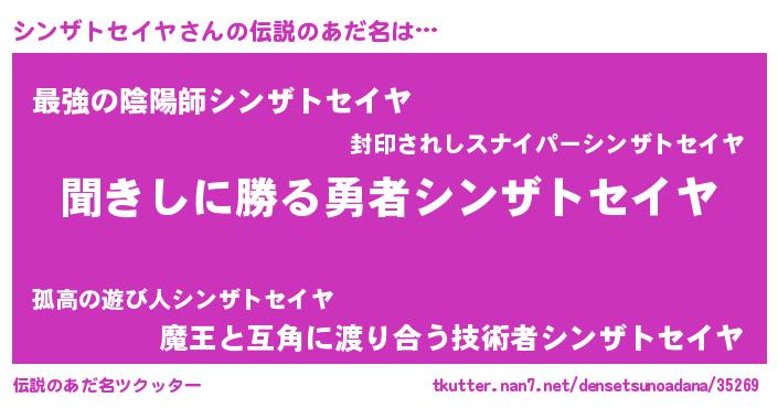 | 男性向けラノベタイトル風あだ名 | 『シンザトセイヤスレイヤー』 |