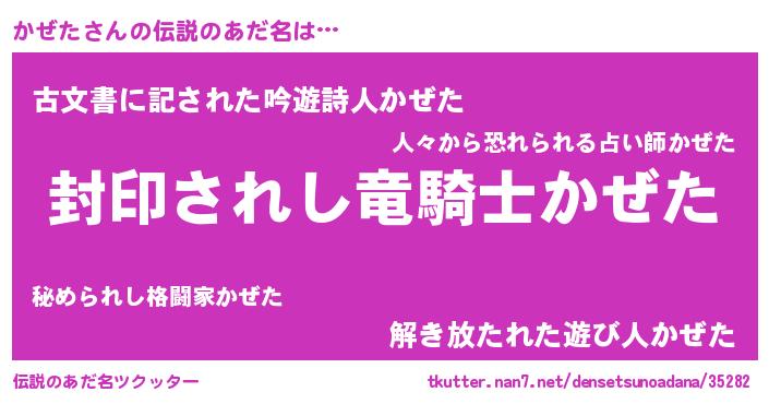 | ヘコむあだ名 | 『かぜにー』『かぜた(遠い目)』 |