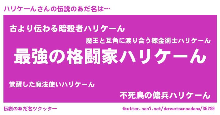 | 意味不明あだ名 | 『自称ハリケーん』『永久保存ハリケーん』 |