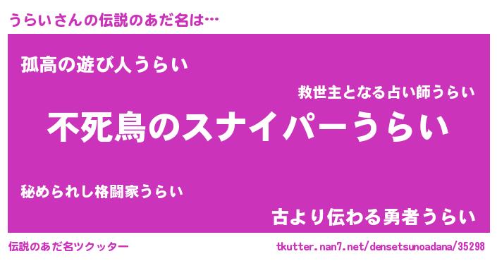 | 胡散臭い通販商品みたいなあだ名 | 『モテモテ間違いなし霊験あらたかなお札…その名も「うらい」』 |