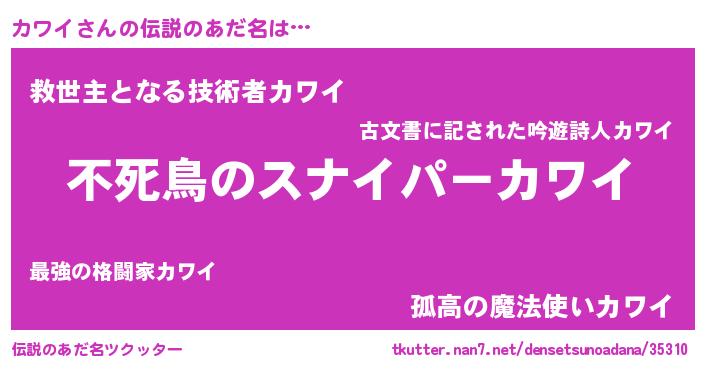 | 女子向けラノベタイトル風あだ名 | 『カワイ姫と円卓の騎士』『カワイ恋絵巻』 |